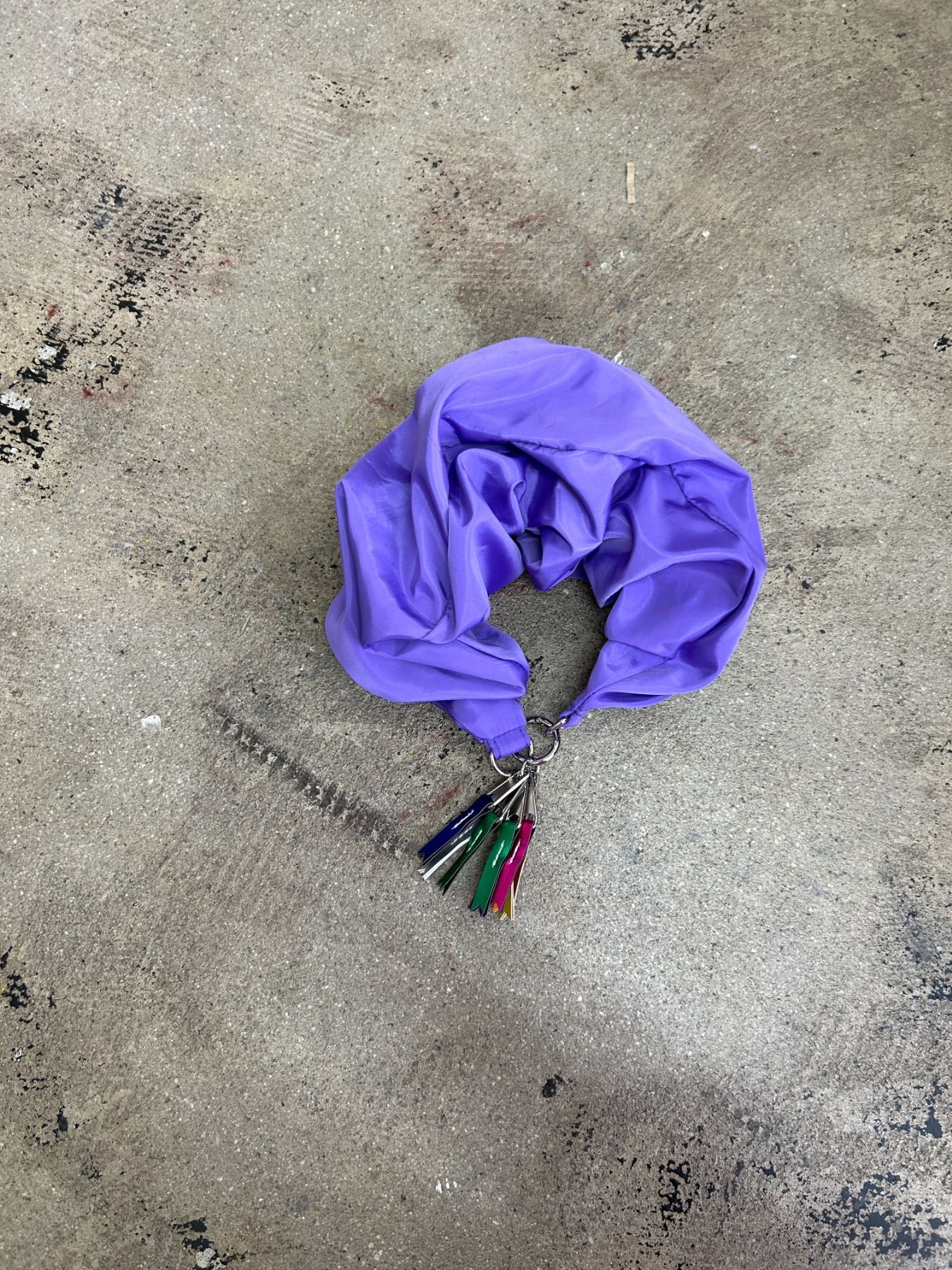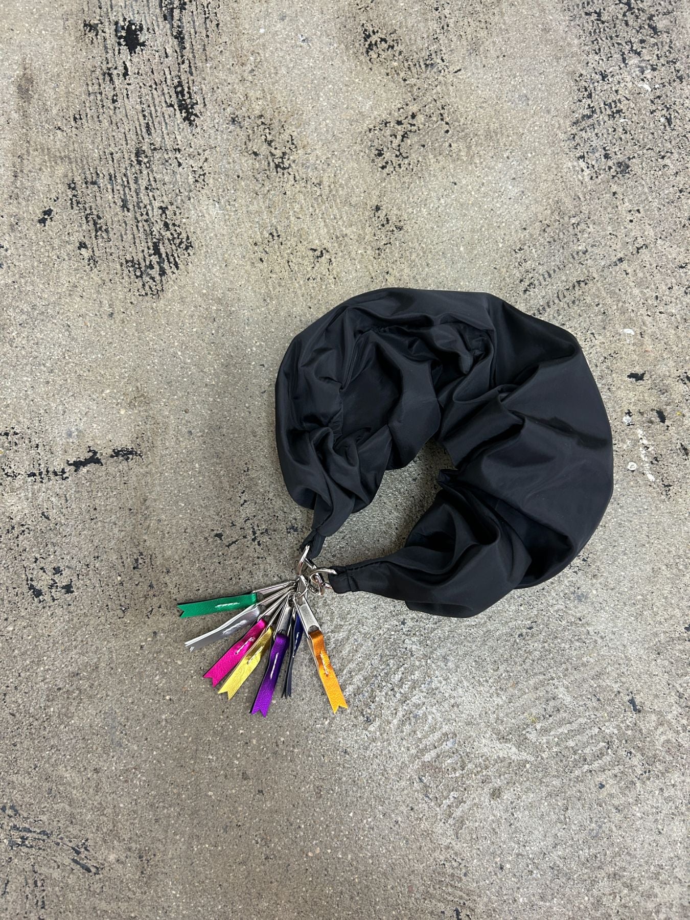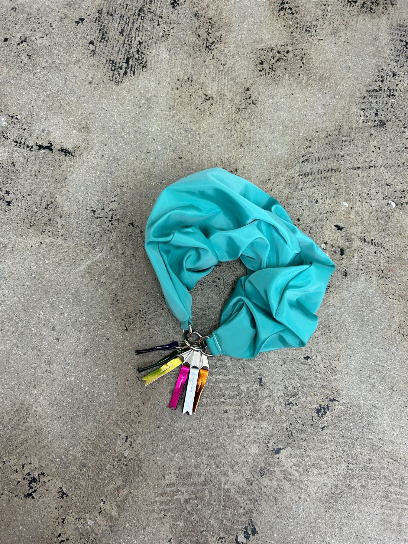 手首にビッグシュシュをつけているようなストラップ。