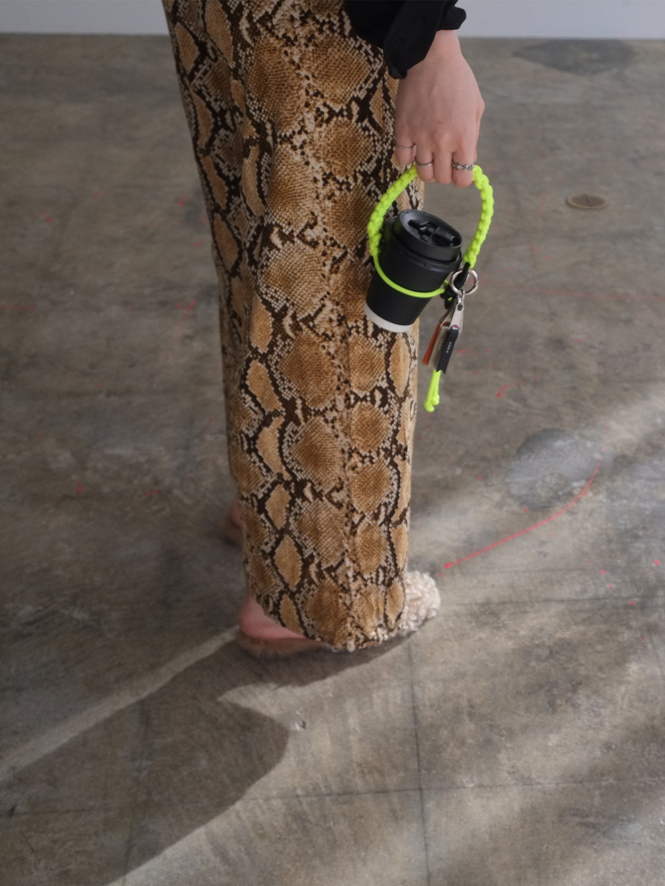 コードを丁寧に手作業で編み込んだチャームは、ペットボトルやカップを固定できる優れもの!