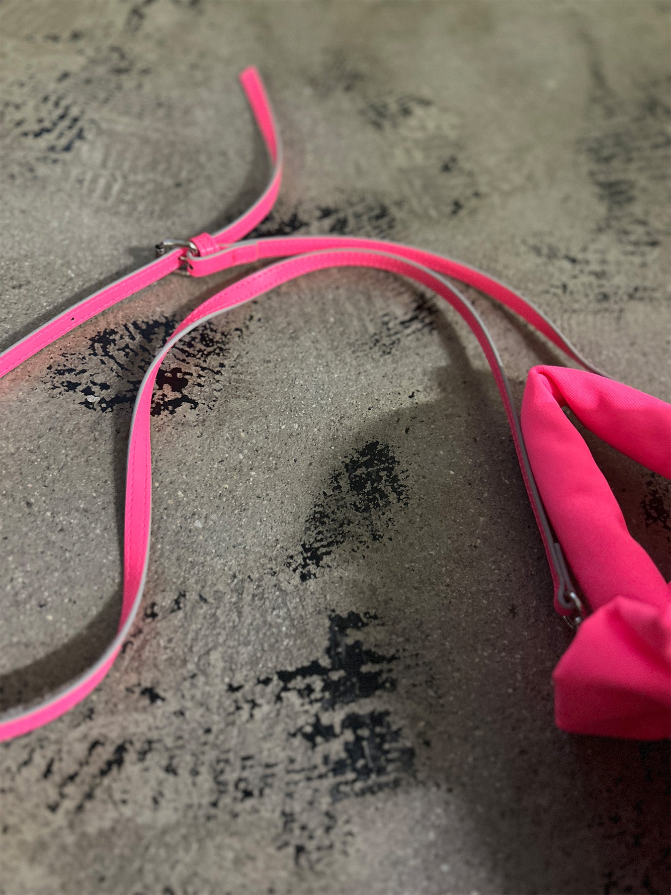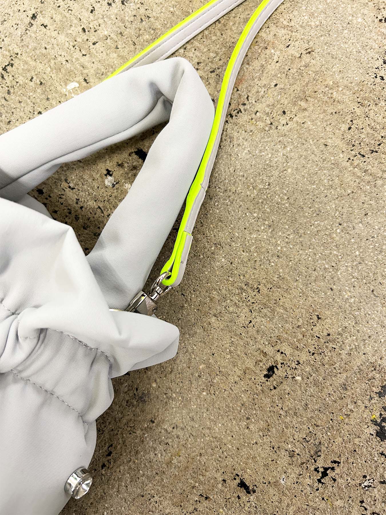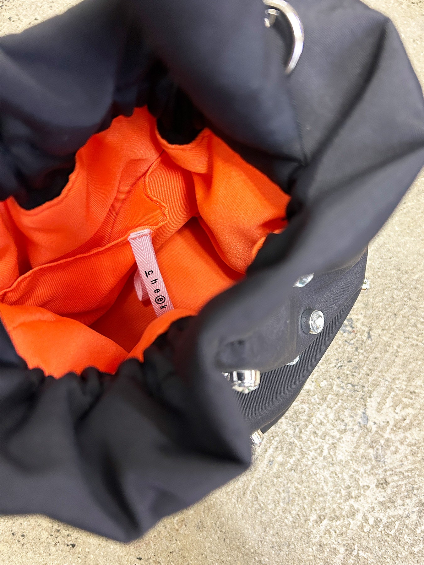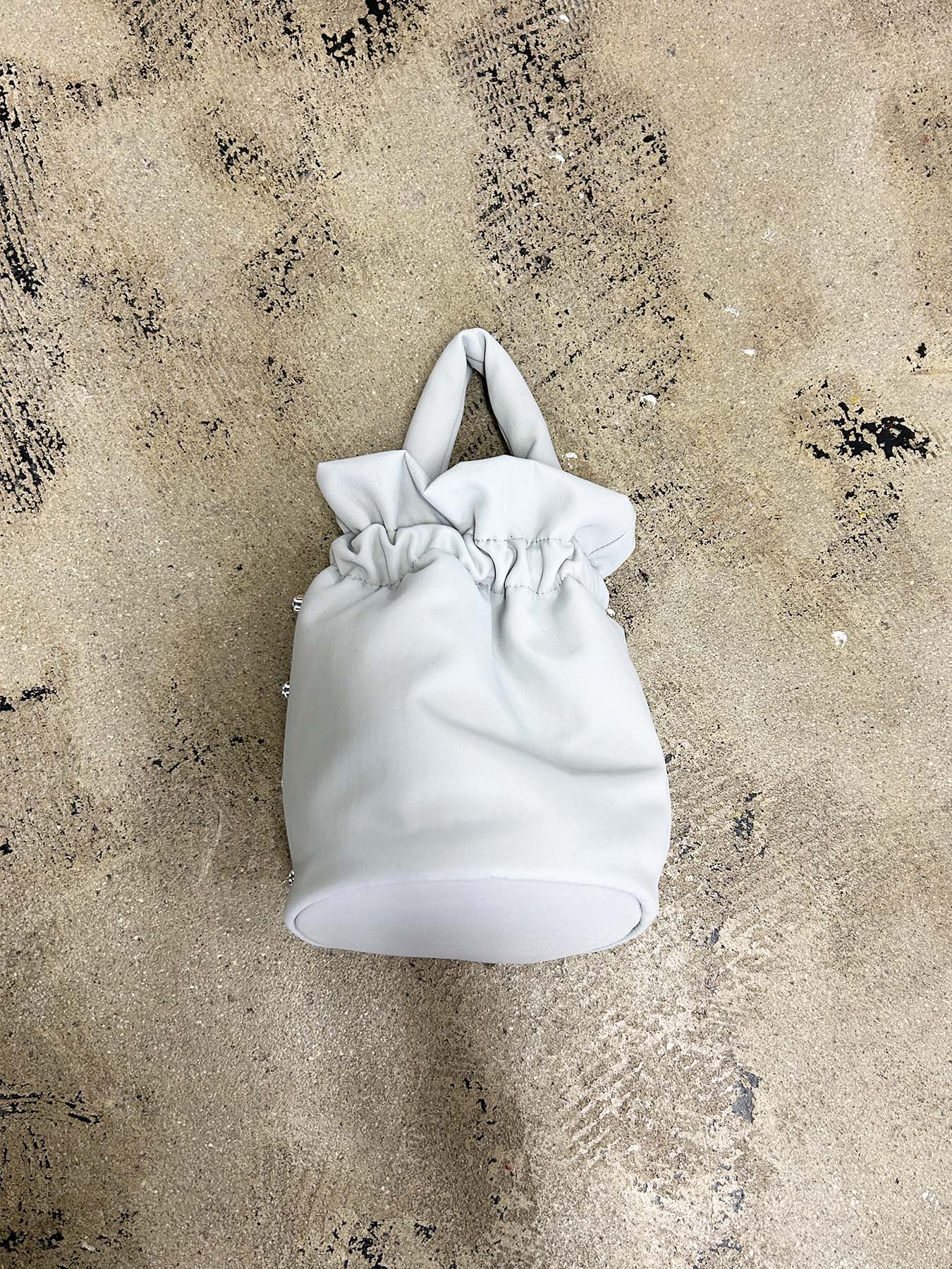 ふわふわの綿入れをしたミニ巾着ショルダー。
