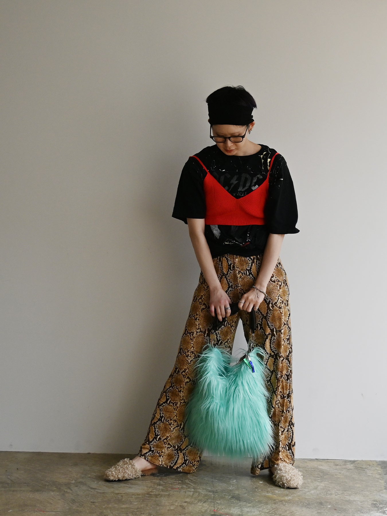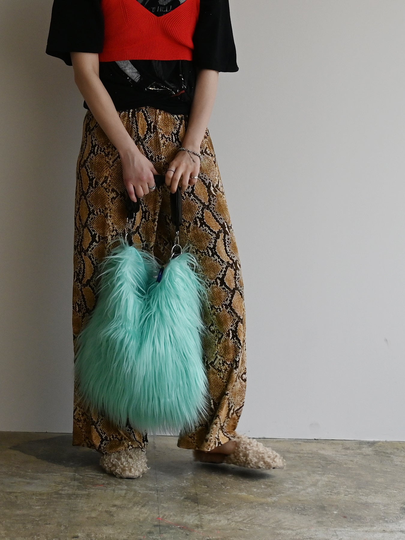 視線を奪うヴィヴィッドカラーのファーと、ボリューム感たっぷりのシルエット。