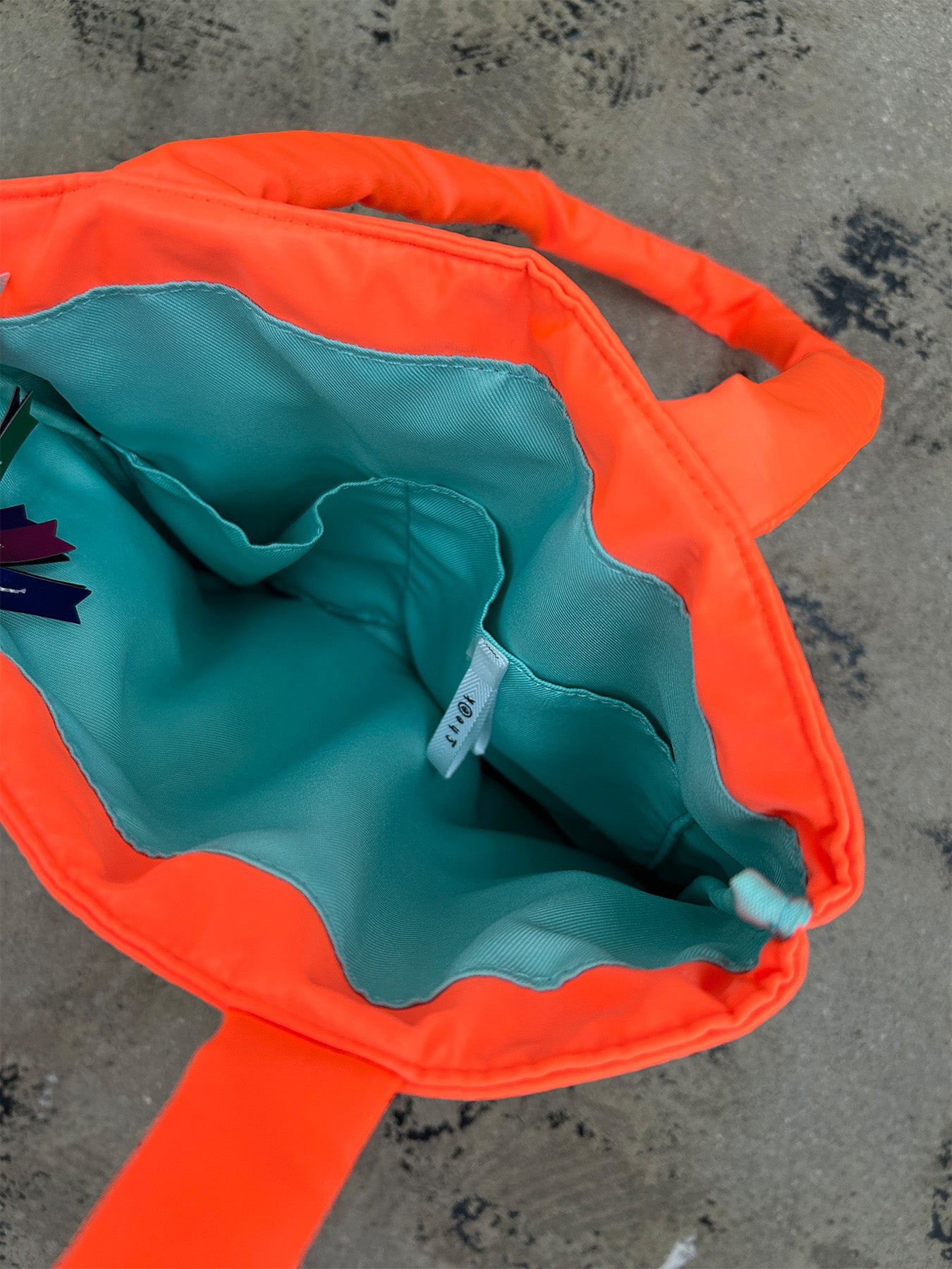 ふわふわに綿入れしたネオンカラーのピロートートはA4サイズの容量です。