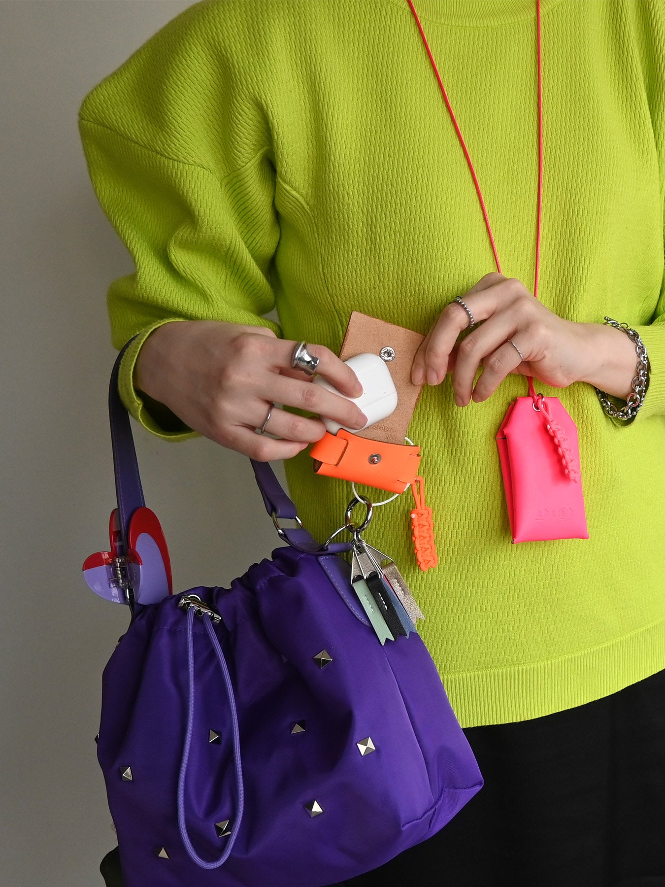 ネオンカラーが映えるワイヤレスイヤホン対応ミニケース。