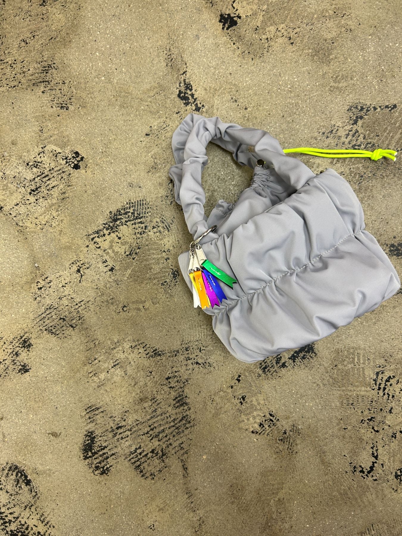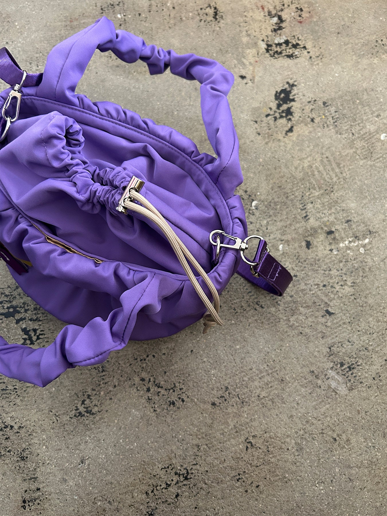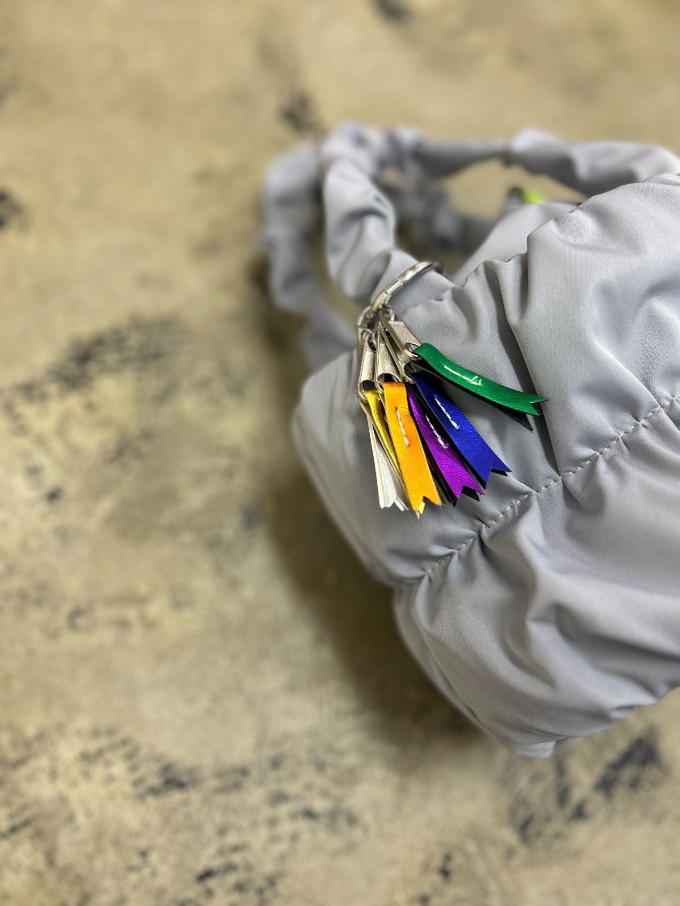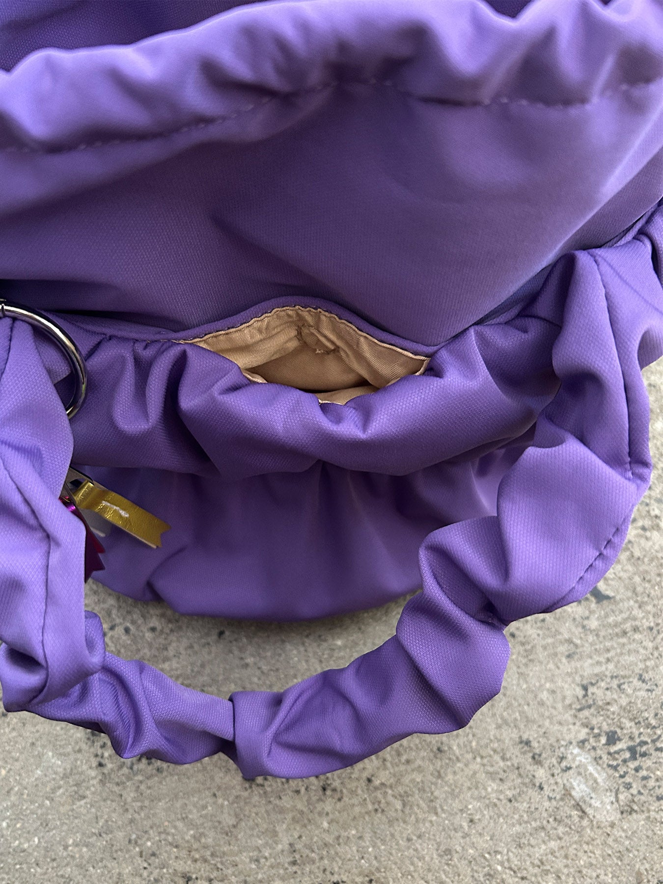 本体とハンドルにギャザーを施し、綿入れをしてふんわり柔らかく仕上げました。