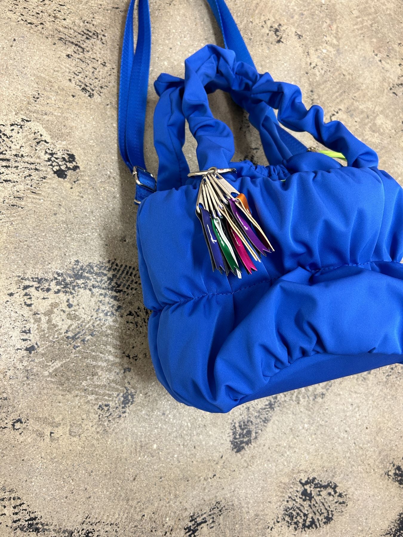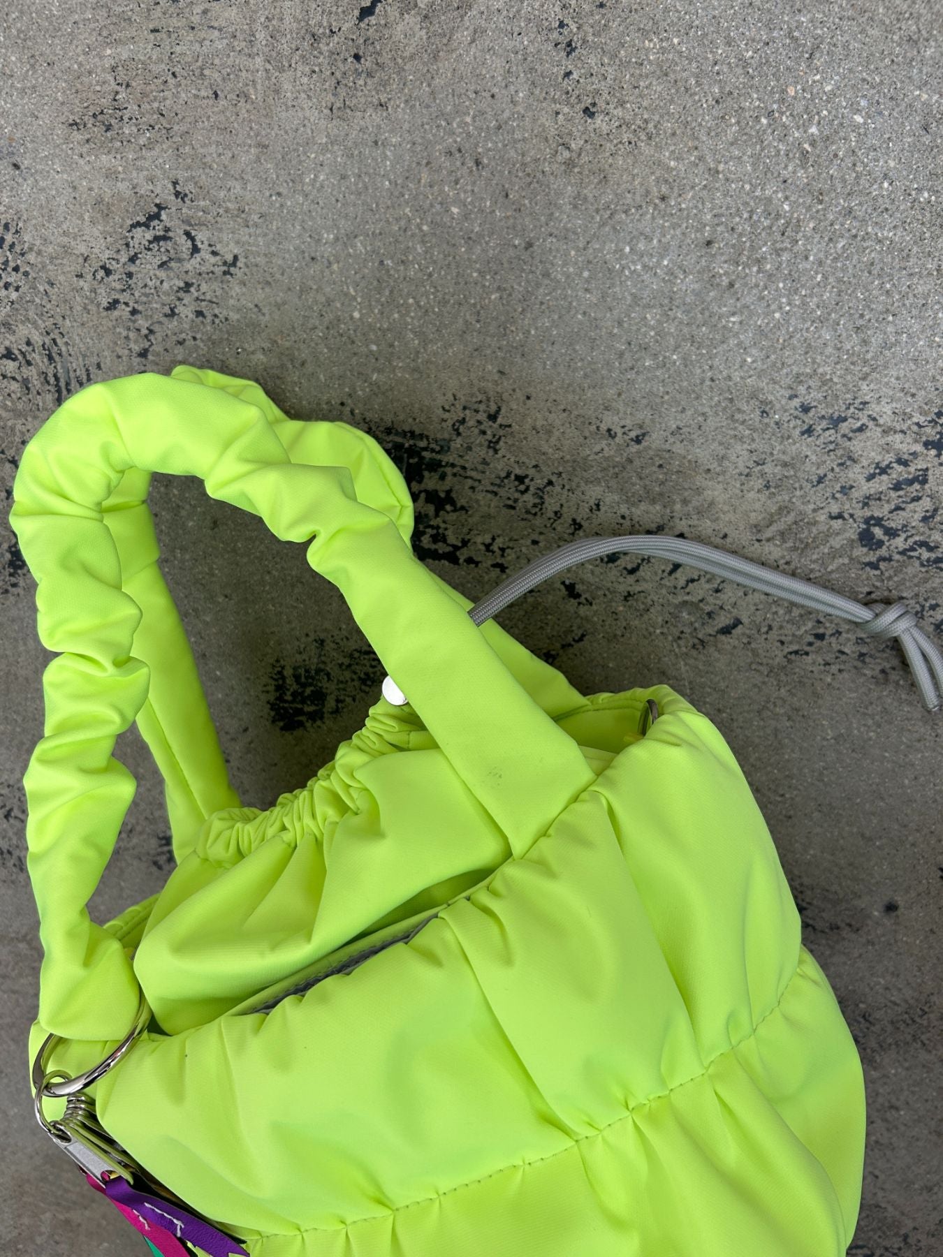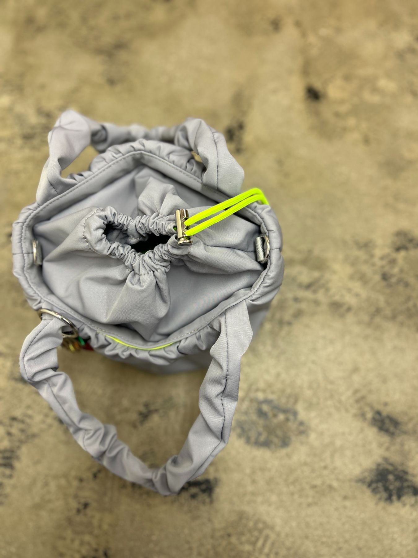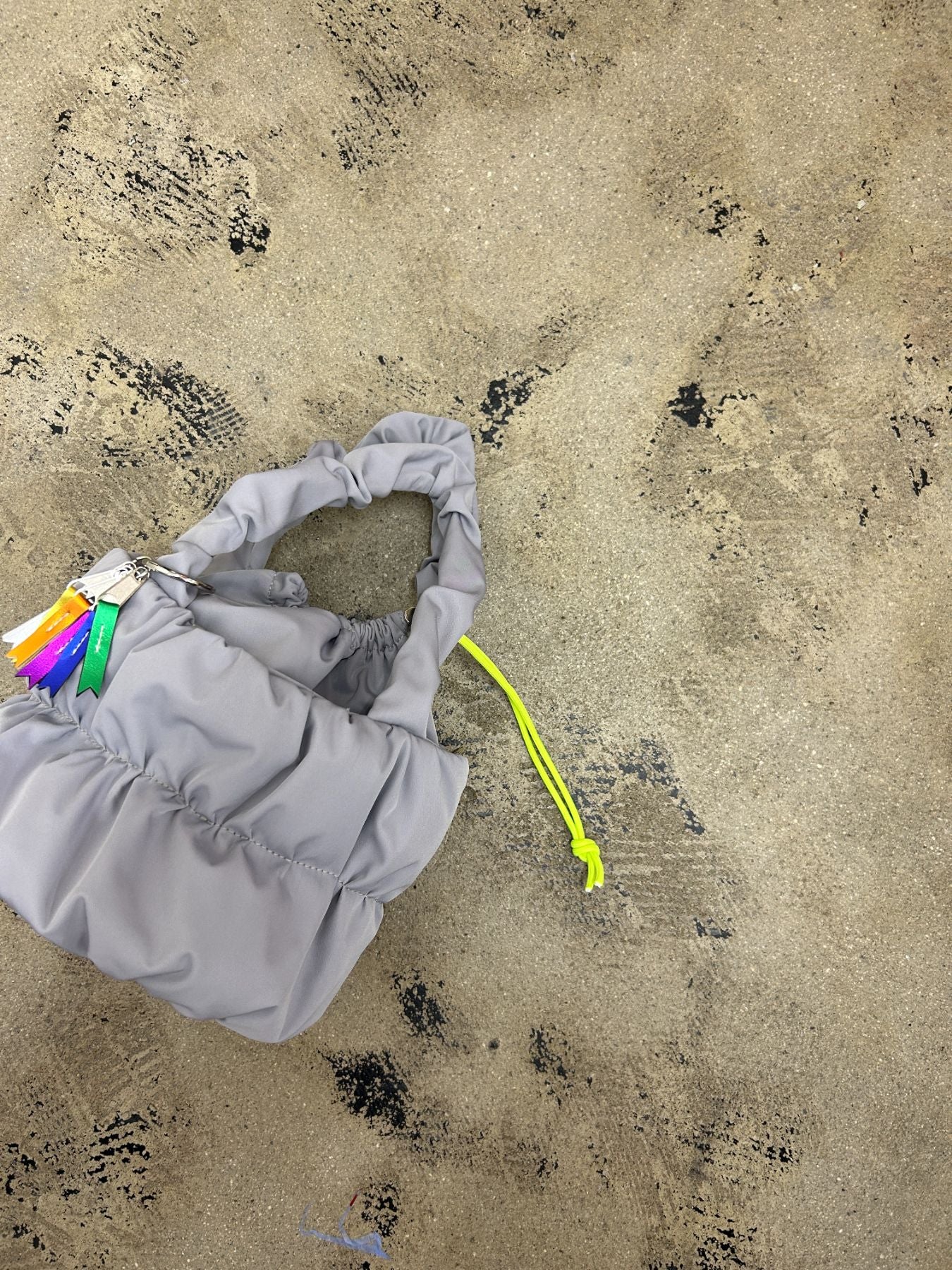 本体とハンドルにギャザーを施し、綿入れをしてふんわり柔らかく仕上げました。