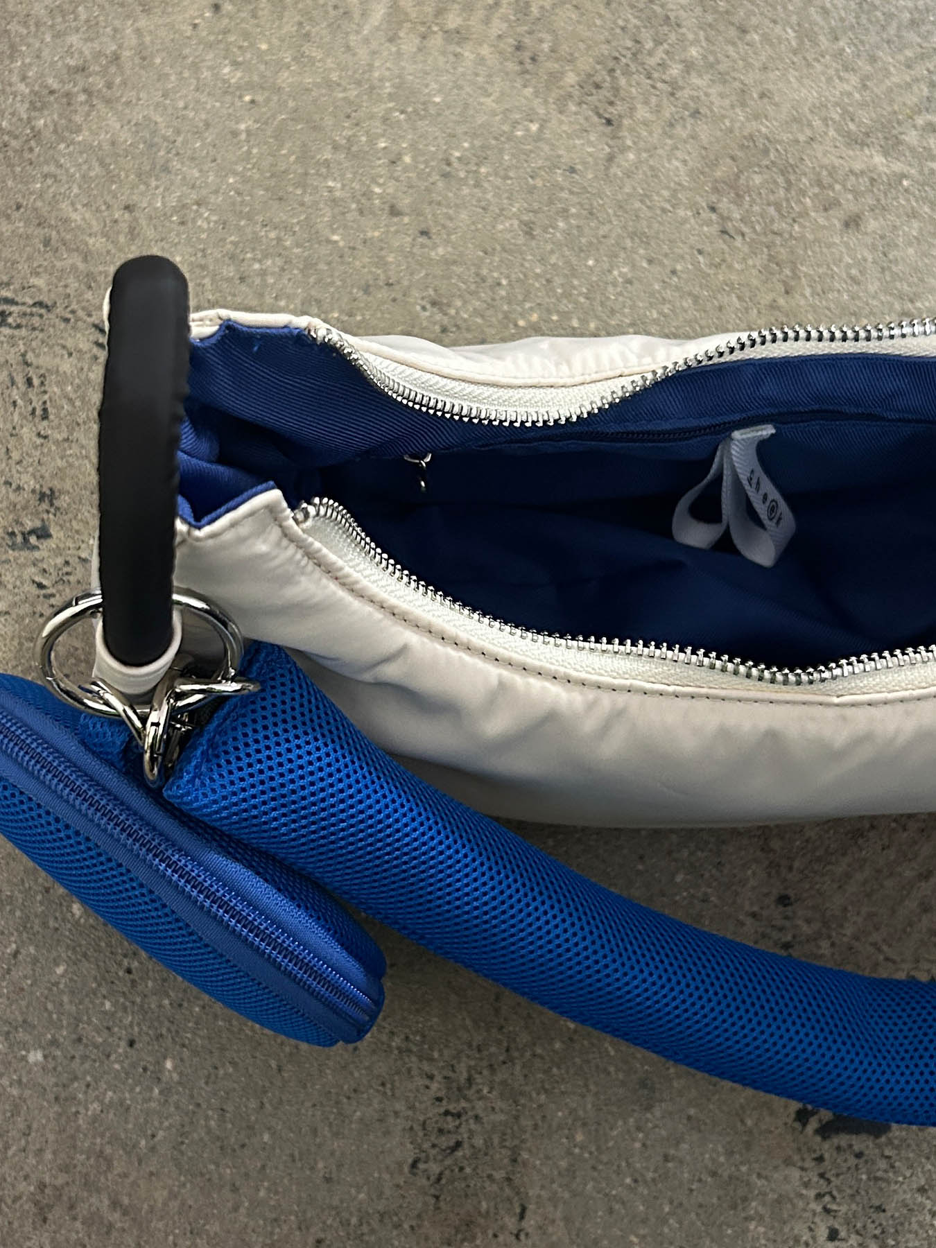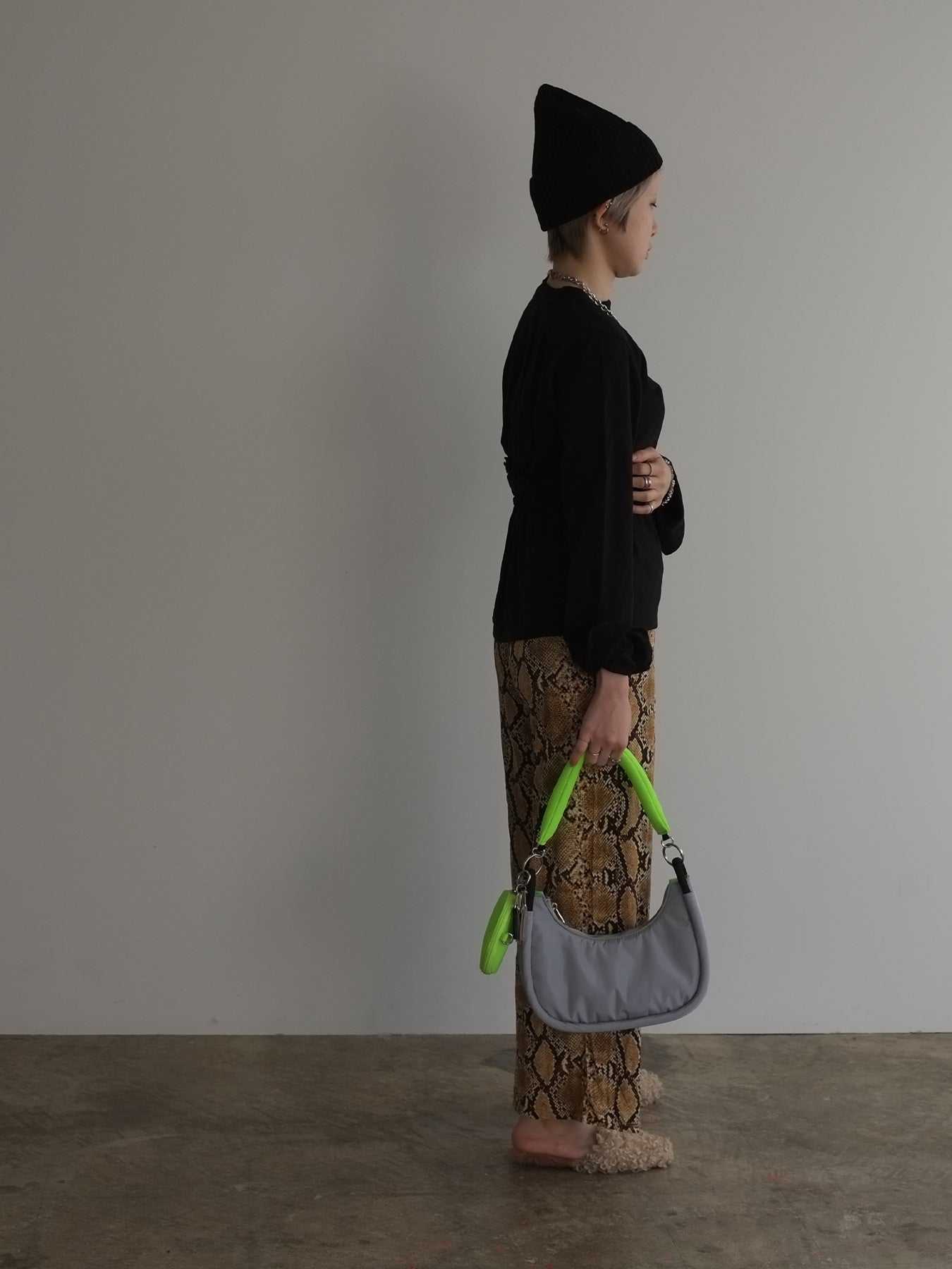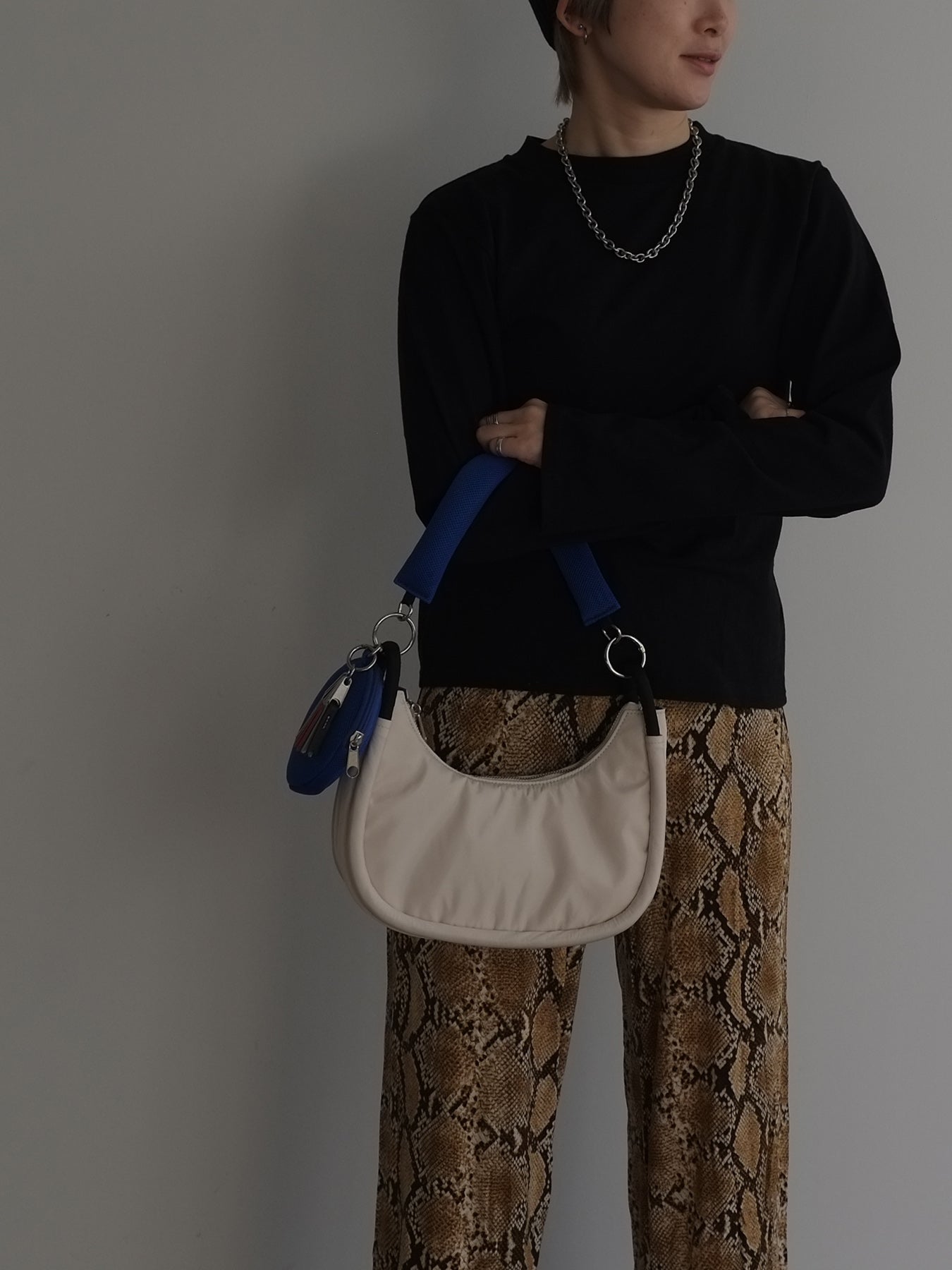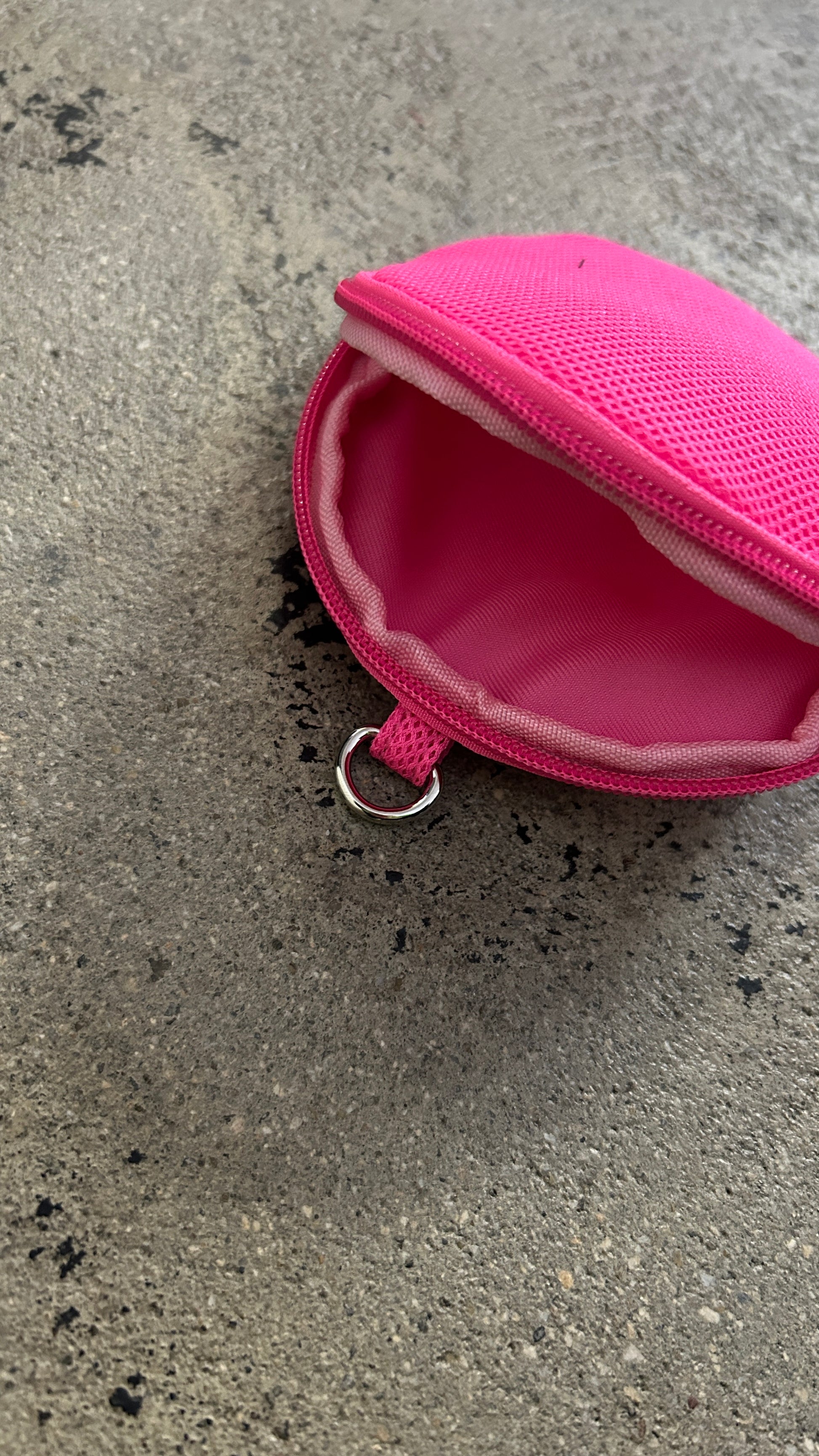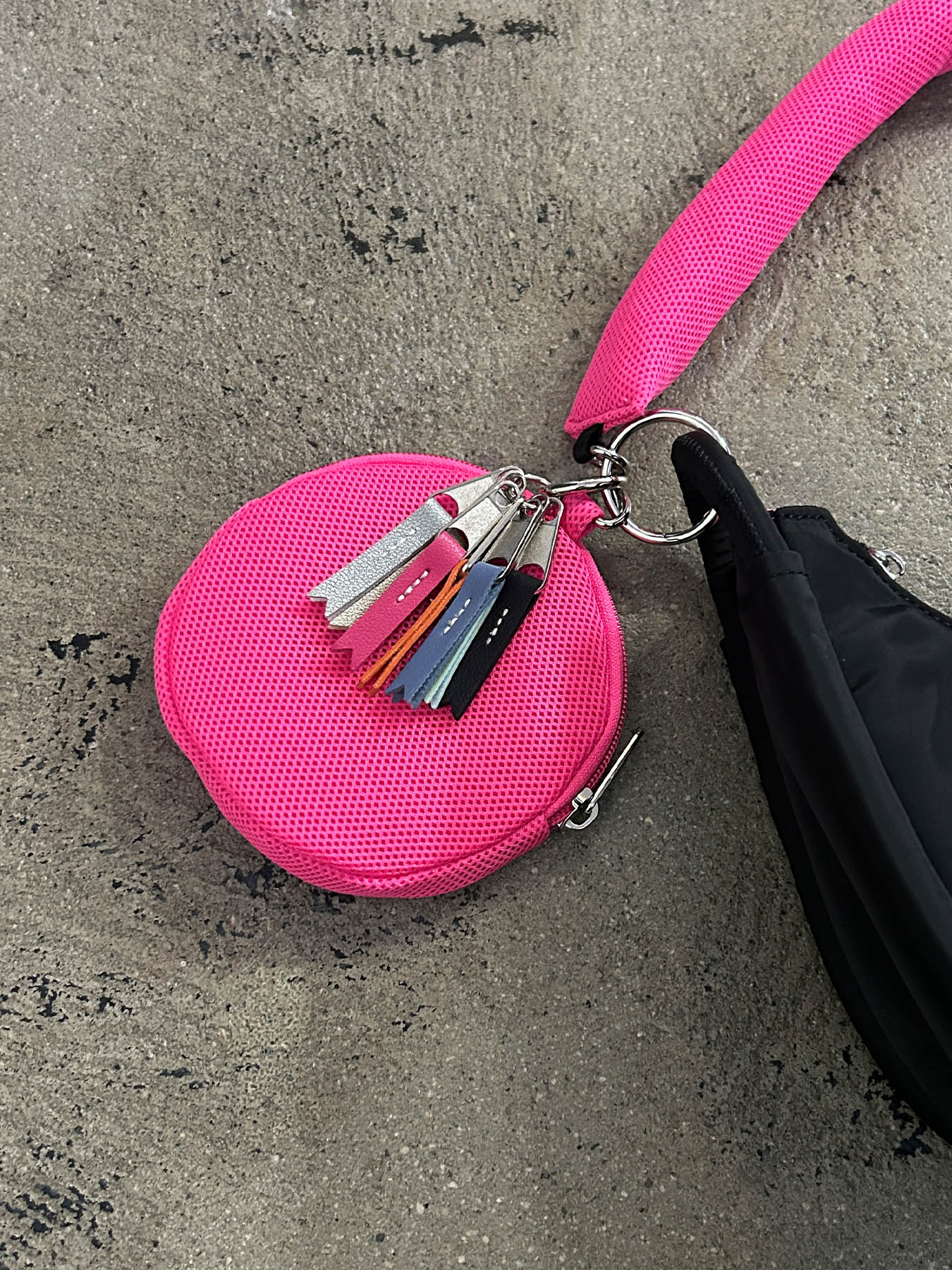 チャームのようについているポーチにはワイヤレスイヤホンなど、小物の収納に便利。